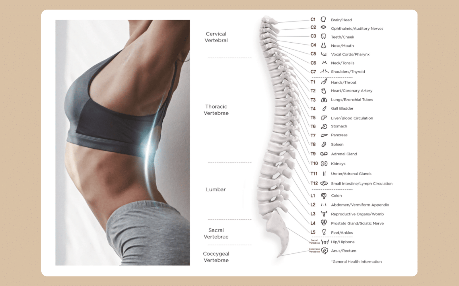 Segmentos de la columna: C1 (región cervical) – L5 (regiones torácica, lumbar y sacra).
